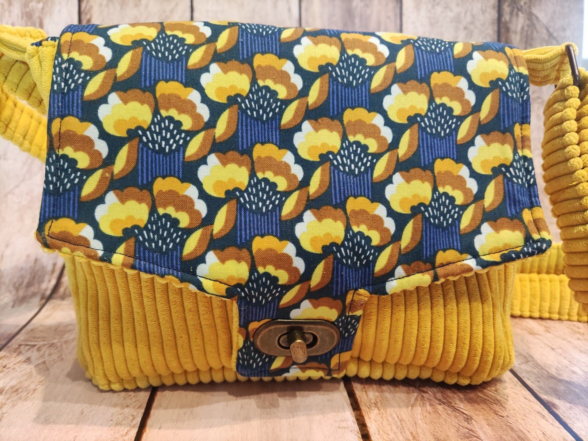 Cousu dans un bel imprimé tendance et un velours jaune plein de peps, il pourra vous suivre un long moment.